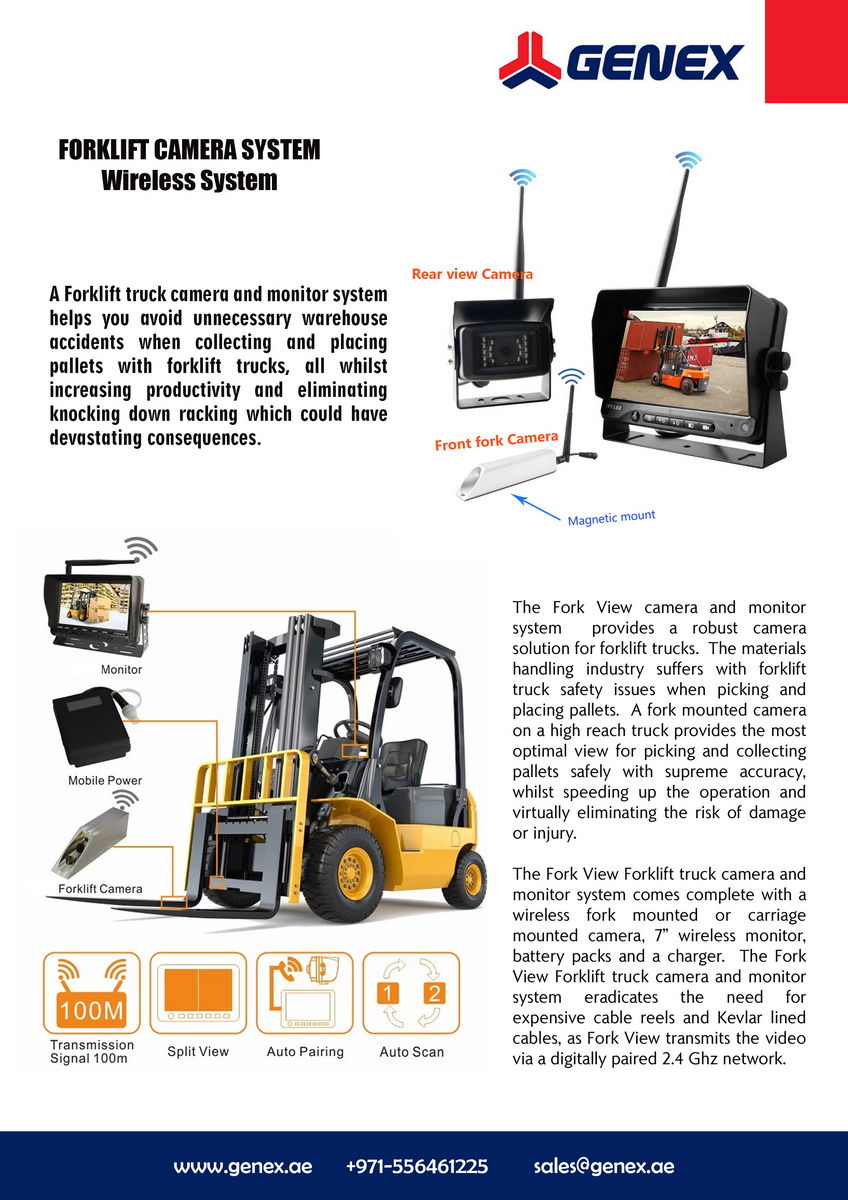 Because of the forks and mast of your forklift, you don’t always have a clear view of what’s happening in your immediate surroundings. A front-view camera is the perfect solution to this problem. This camera system is perfect for showing what’s happening in front of the forklift.